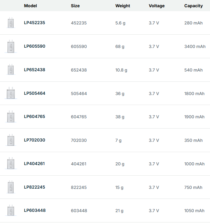 Lithium Polymer Battery Standard Temperature -20℃ ~ +60℃