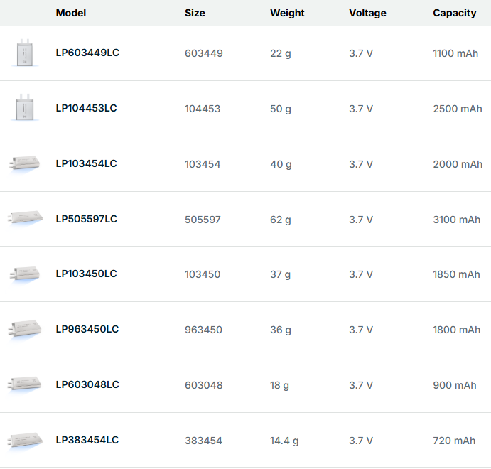 - Nominal Voltage of 3.7V