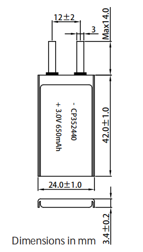 3.0 Volt - Li-MnO2 Pouch Battery CP352440