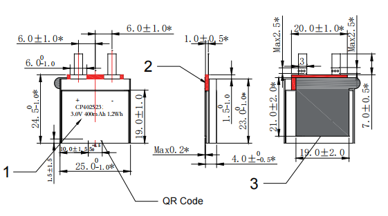 3.0 Volt - Li-MnO2 Pouch Battery CP402523