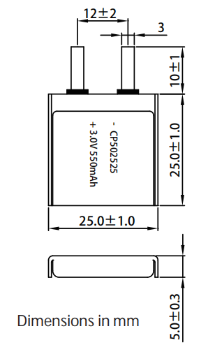 3.0 Volt - Li-MnO2 Pouch Battery CP502525