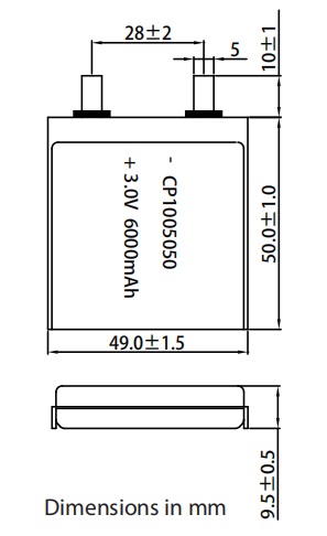 Lithium manganese pouch battery,Size 10.0*50.5*51.0mm,3V 6000mAh,Temperature -20℃ ~ +70℃ KLS5-04-CP1005050 |