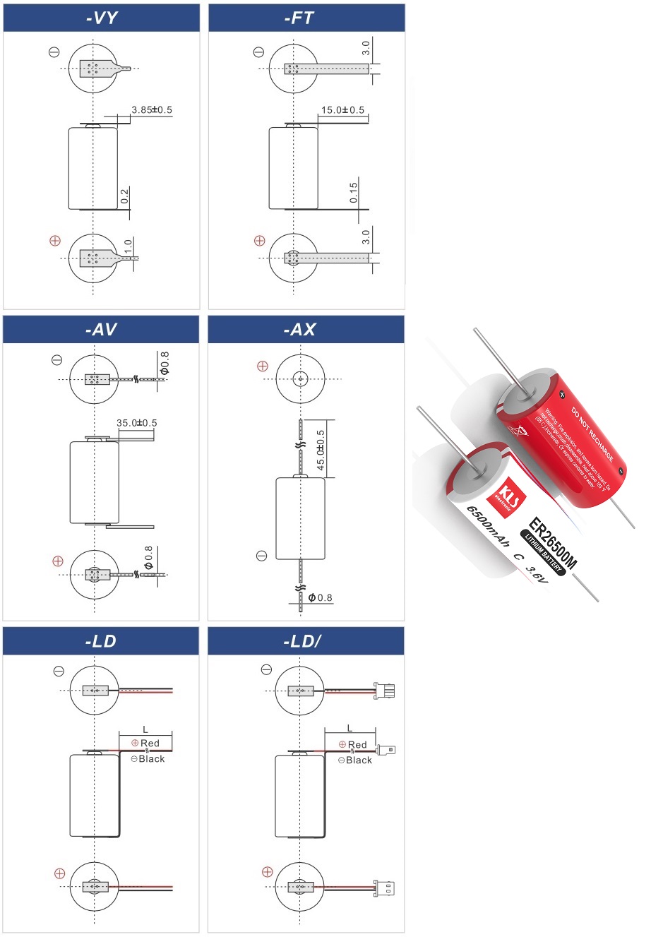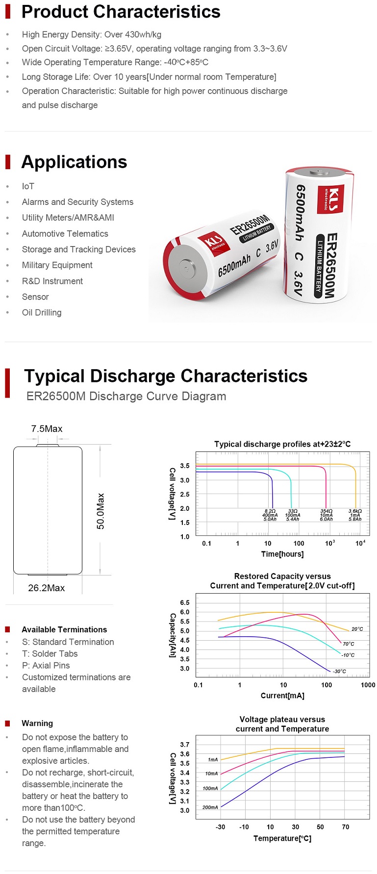 ER26500M Li-SoCl2 spiral batteries,3.6V 6500 mAh