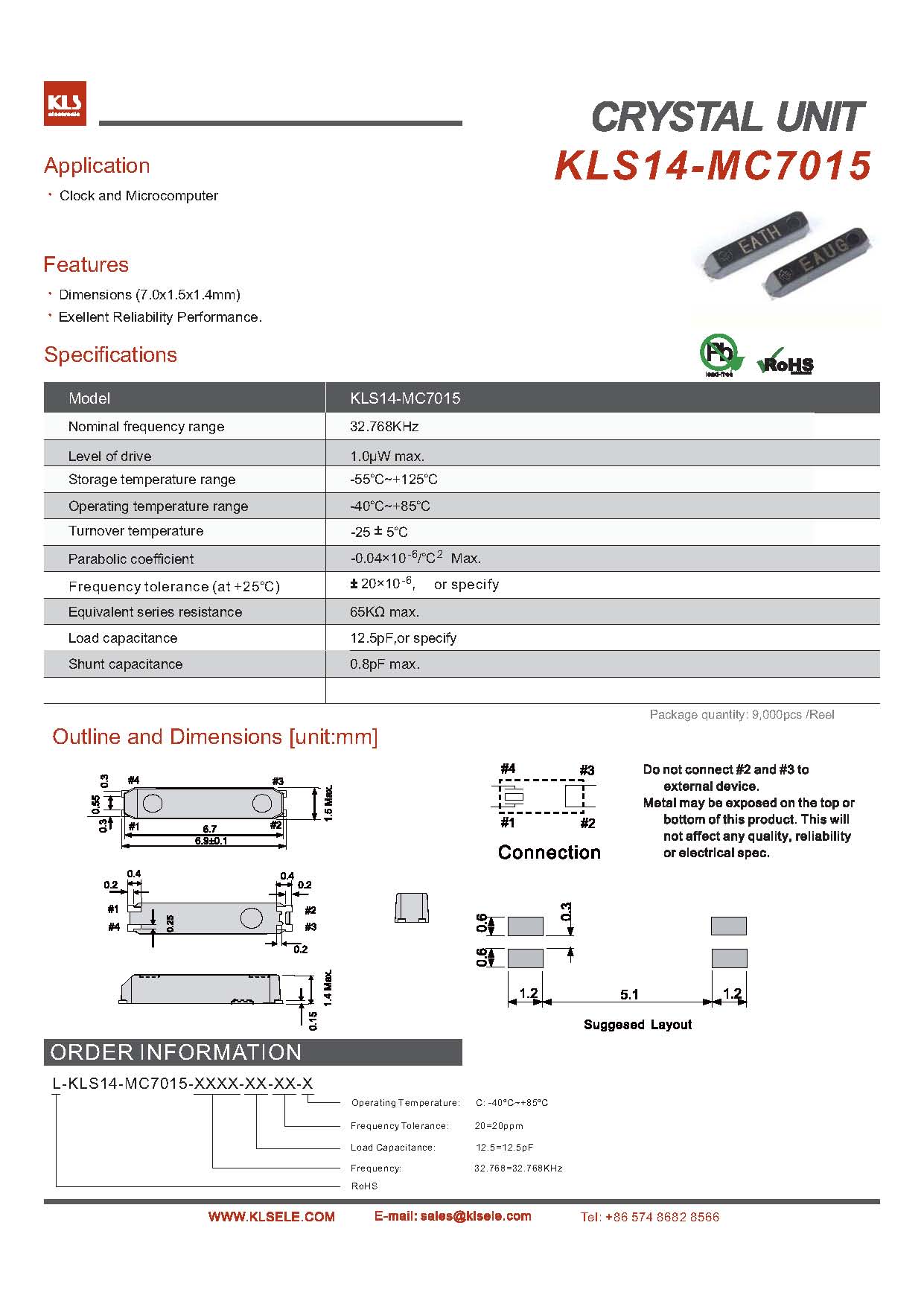 32.768KHz Crystal Units 7.0x1.5x1.4mm SMD