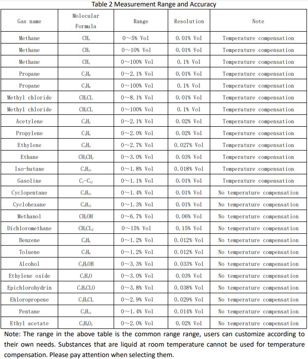 - • Application: industrial-process control and safety protection, agriculture and animal husbandry, NDIR Combustible Gas Detection/C3H8 Sensing