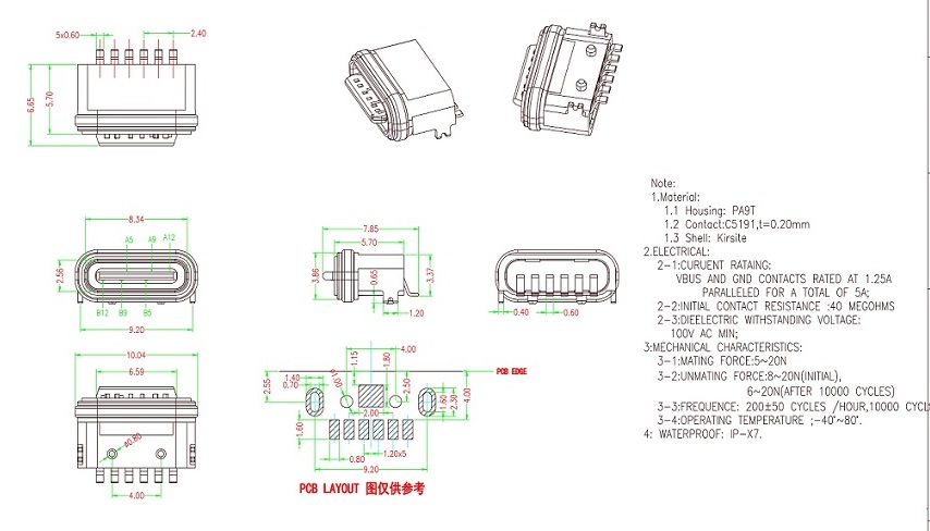 SMT USB Type-C 24P IPX8 Waterproof Connector