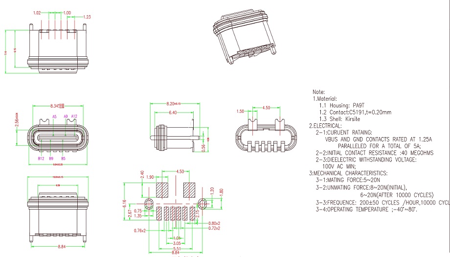 SMT USB Type-C 24P IPX8 Waterproof Connector